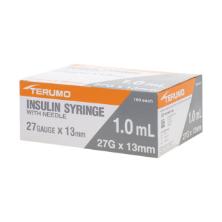 0.5mL 27G 0.4mm x 13mm U100 Terumo Insulin Syringes Product Code: SS*05M2713KA 100 Single Use Syringes Fixed Needle Syringes Non-Toxic Non-Pyrogenic Sterile if Package Intact Does NOT contain Natural Rubber Latex Individually Packaged Price $27.59 Details Add to Cart